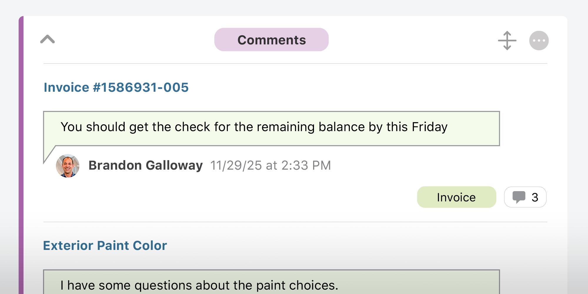 Enhanced accountability, with every comment tied to a specific invoice and contributor